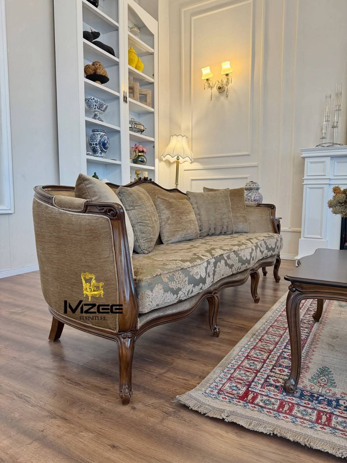 Wooden carved sofa in traditional drawing room