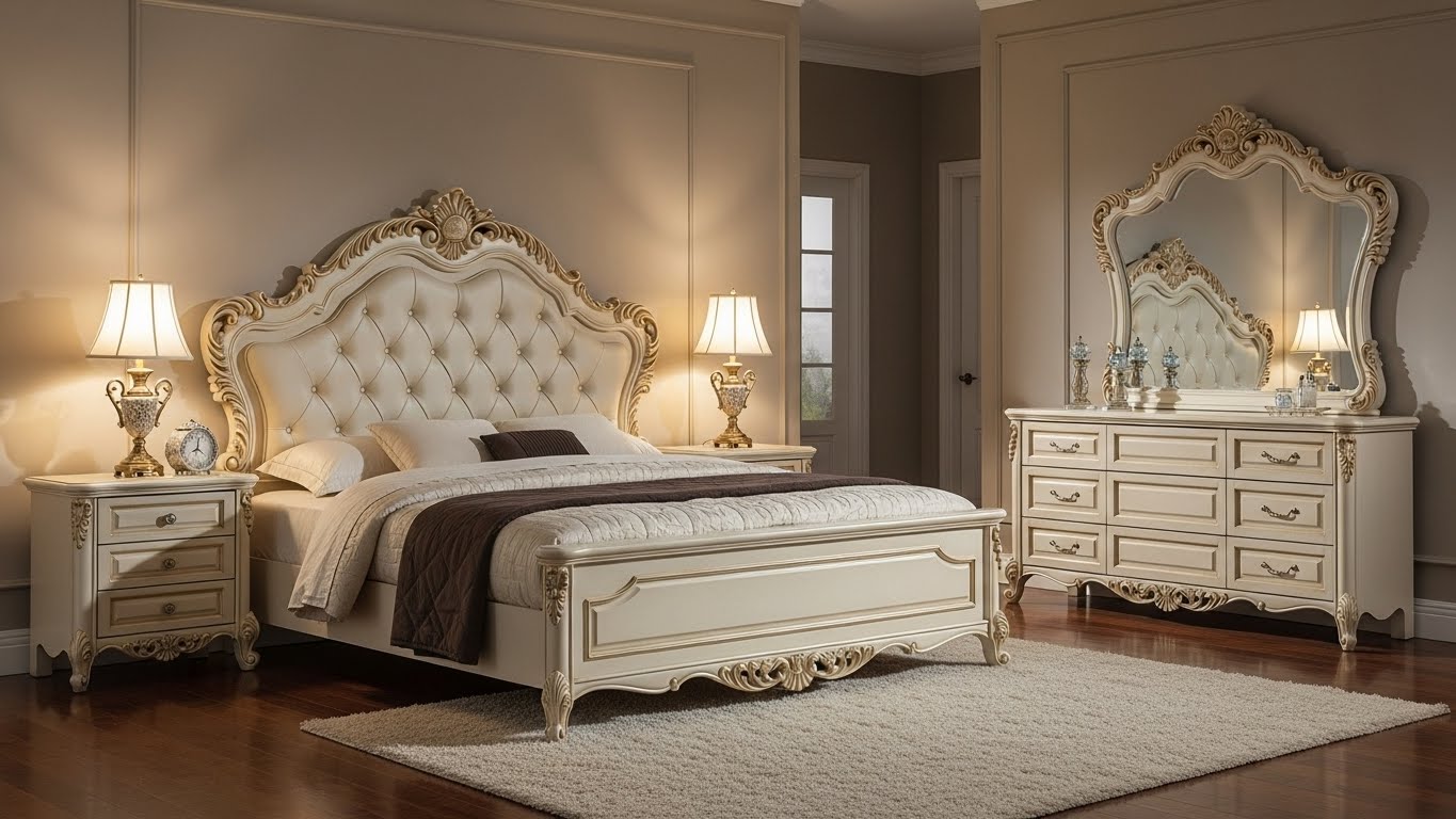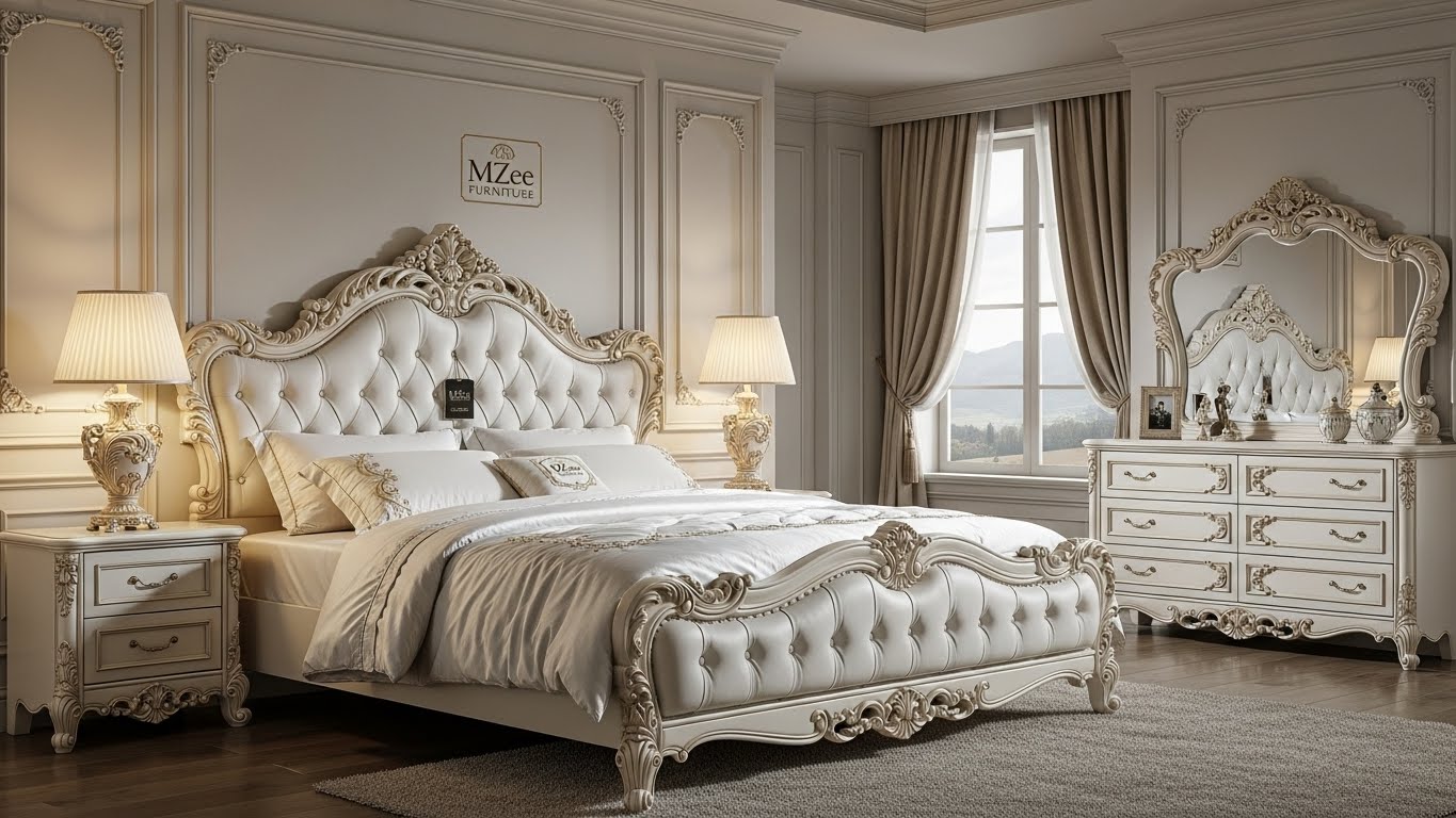 Classic carved beds with royal motifs, Mughal-style headboards, Italian silhouettes, and Turkish curves complement both traditional and modern Pakistani interiors. These designs fit perfectly whether the home décor is: