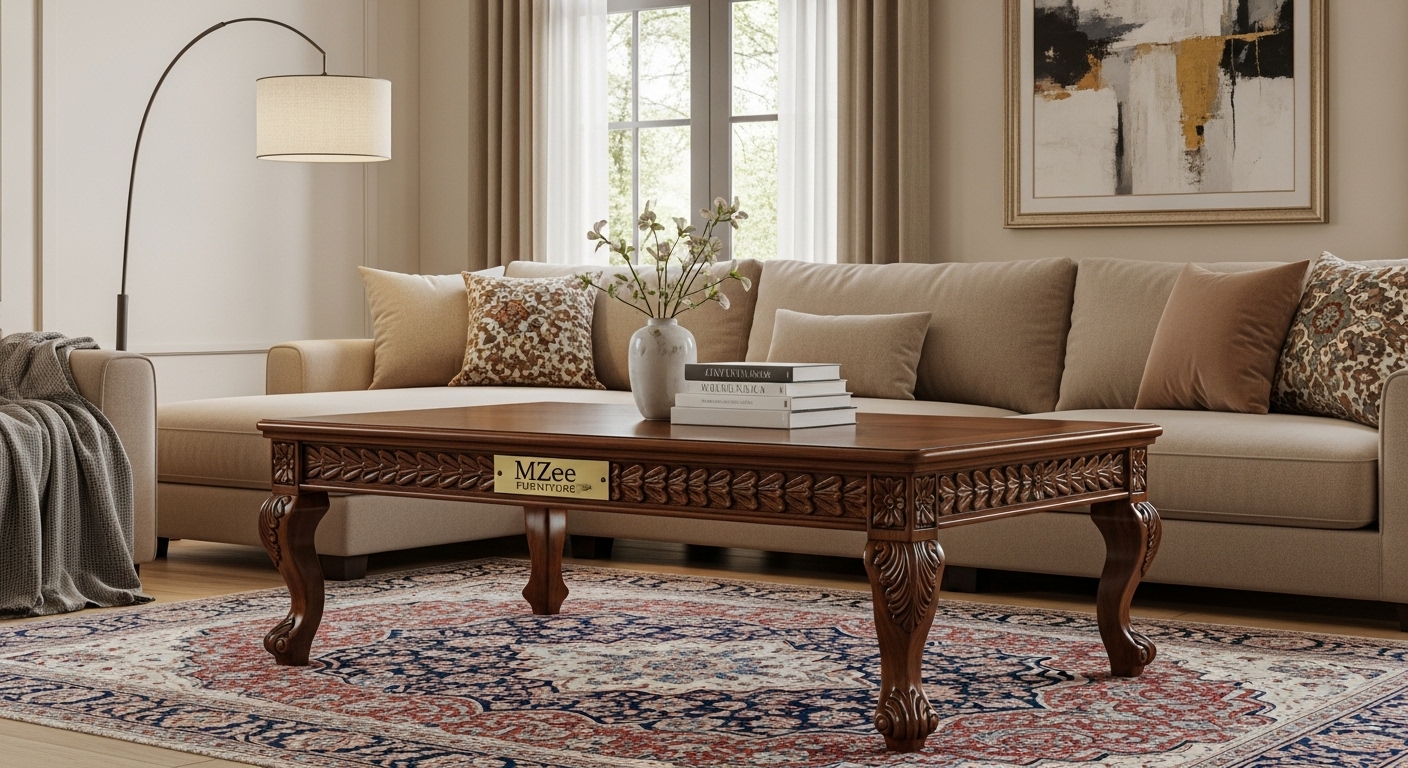 Elevate your living space with a handcrafted Sheesham or Kikar wood coffee table. MZee Furniture ensures premium quality, precise craftsmanship, and safe shipping to your UAE home.