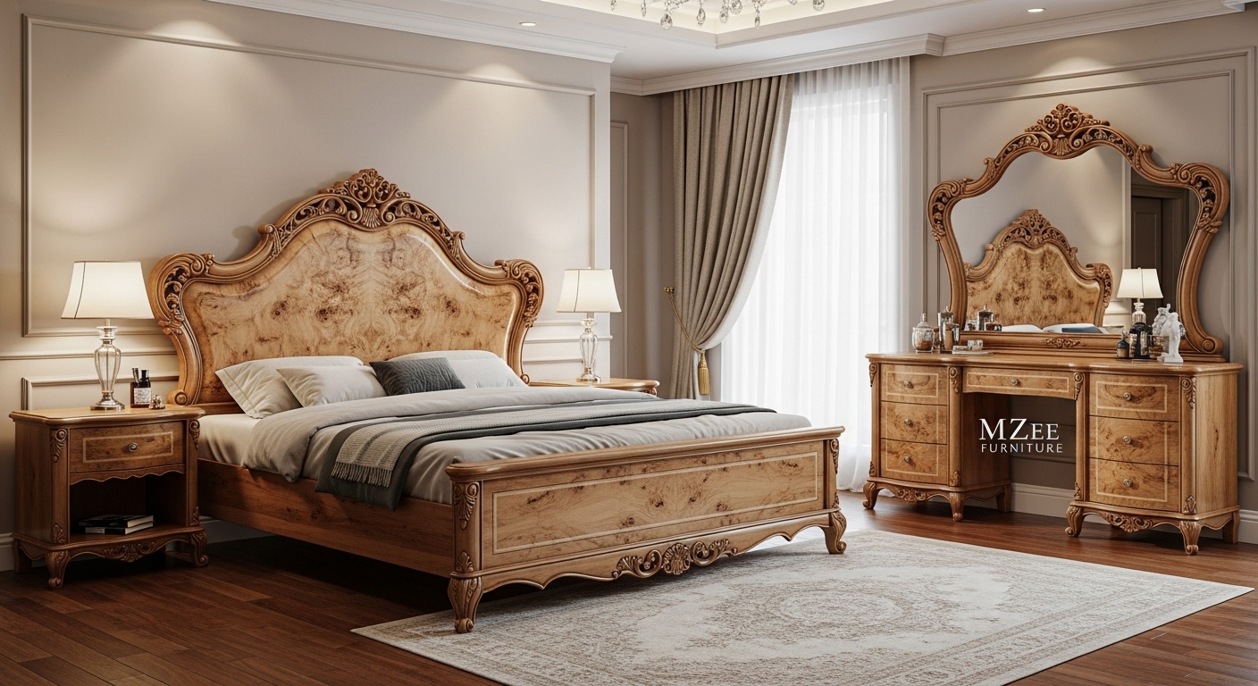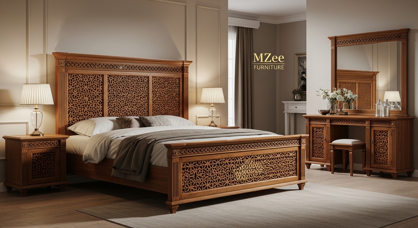 Upgrade your bedroom today with the MZee Bed set, the perfect blend of Chinioti craftsmanship and modern design. Experience the elegance and durability of premium Sheesham wood furniture. Order now to transform your bedroom into a luxurious retreat! Contact MZee Furniture via WhatsApp, call +923217918370, or visit mzeefurniture.com.